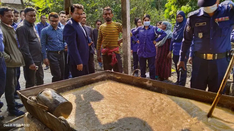 চুয়াডাঙ্গা জেলা সদরে সাতভাই পুকুর এলাকায় ভোক্তা অধিকার সংরক্ষণ অধিদপ্তরের অভিযানে একটি গোডাউন থেকে মেয়াদোত্তীর্ণ খেজুর ও মানহীন ডাল জব্দ করেছে। এ ঘটনায় ওই গোডাউনের মালিককে ৫০ হাজার টাকা জরিমানা করা হয় এবং জব্দকৃত পণ্য ধ্বংস করা হয়।সোমবার (০৮ ডিসেম্বর) বিকেল ৩টা থেকে ৫টা পর্যন্ত চুয়াডাঙ্গা জেলা কার্যালয়ের সহকারী পরিচালক মোহাম্মদ মামুনুল হাসানের নেতৃত্বে এ অভিযান পরিচালনা করা হয়।অভিযানে নিত্যপ্রয়োজনীয় পণ্যের কয়েকটি গুদাম তদারকি করা হয়। তদারকির সময়ে মেসার্স আল মদীনা ট্রেডার্সের গুদামে মেয়াদোত্তীর্ণ খেজুর ও মানহীন ডাল বিক্রয়ের উদ্দেশ্যে মজুদ রাখার প্রমাণ পাওয়া যায়। ভোক্তা-অধিকার সংরক্ষণ আইন, ২০০৯-এর ৫১ ও ৪৫ ধারা অনুযায়ী প্রতিষ্ঠানটির মালিক শফিকুল ইসলামকে ৫০ হাজার টাকা অর্থদণ্ড প্রদান করা হয়। একই সঙ্গে প্রতিষ্ঠানটির গুদাম থেকে ৫০০ কেজি খেজুর এবং ৩৭৫ কেজি ডাল জব্দ করে পরে ধ্বংস করা হয়।অভিযানে উপস্থিত ছিলেন নিরাপদ খাদ্য কর্মকর্তা সজীব পাল, পৌর স্যানিটারি ইন্সপেক্টর নার্গিস জাহান, জেলা দোকান মালিক সমিতির আহ্বায়ক মনজুরুল আলম মালিক লার্জ, সদস্য সচিব সুমন পারভেজ, ক্যাব প্রতিনিধি রফিকুল ইসলাম এবং চুয়াডাঙ্গা জেলা পুলিশের একটি টিম।জনস্বার্থে এ ধরনের অভিযান নিয়মিতভাবে চলবে বলে জানিয়েছে ভোক্তা অধিকার।