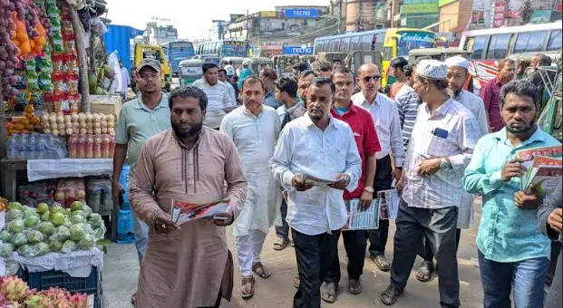 গণসংযোগটি বটতলী সিকদার সেন্টার থেকে শুরু হয়ে কাচাঁবাজার হয়ে মোস্তফা সিটি সেন্টারের সামনে গিয়ে শেষ হয়।