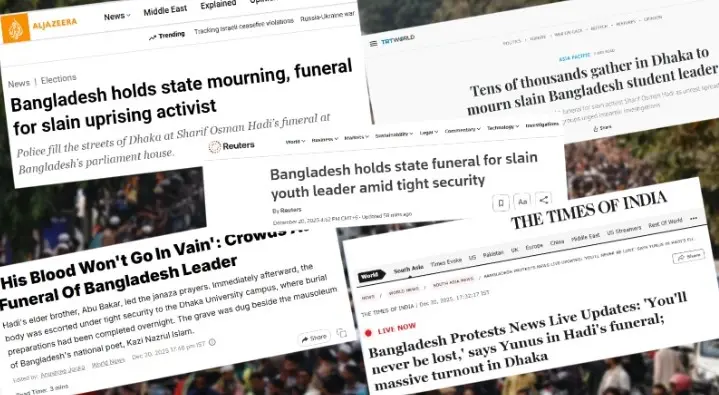 • শহিদ হাদির জানাজায় জনস্রোতের খবর আন্তর্জাতিক সংবাদমাধ্যমে