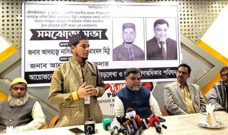 সংবাদ সম্মেলনে মৌলভীবাজার-১ আসনের বিএনপি প্রার্থী নাসির উদ্দিন আহমদ মিঠুসহ উপজেলা বিএনপির বিভিন্ন পর্যায়ের নেতাকর্মীরা উপস্থিত ছিলেন।